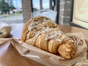 I take home an olive fougasse. The bread is springy and fresh, with salty olives and a punch of oregano. It’s the kind of thing that disappears faster than you expect—perfect with cheese, soup, or just eaten standing at the counter.